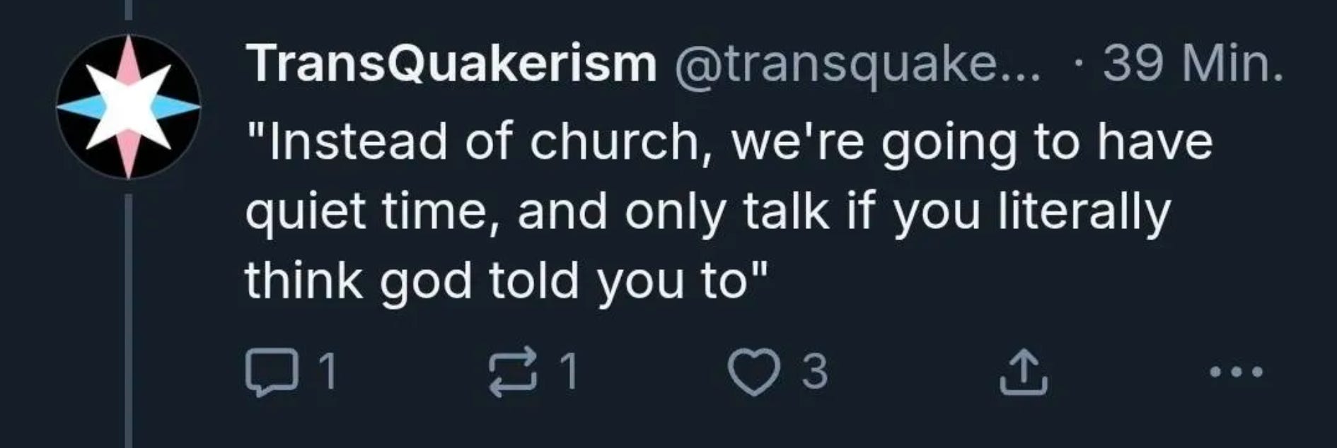 Usually, someone else will be sufficiently impacted by that first person’s statement that they’ll feel like speaking in response, often starting with words like “Hearing that, I notice [blah].” If not, return to silence until the spirit moves someone else.