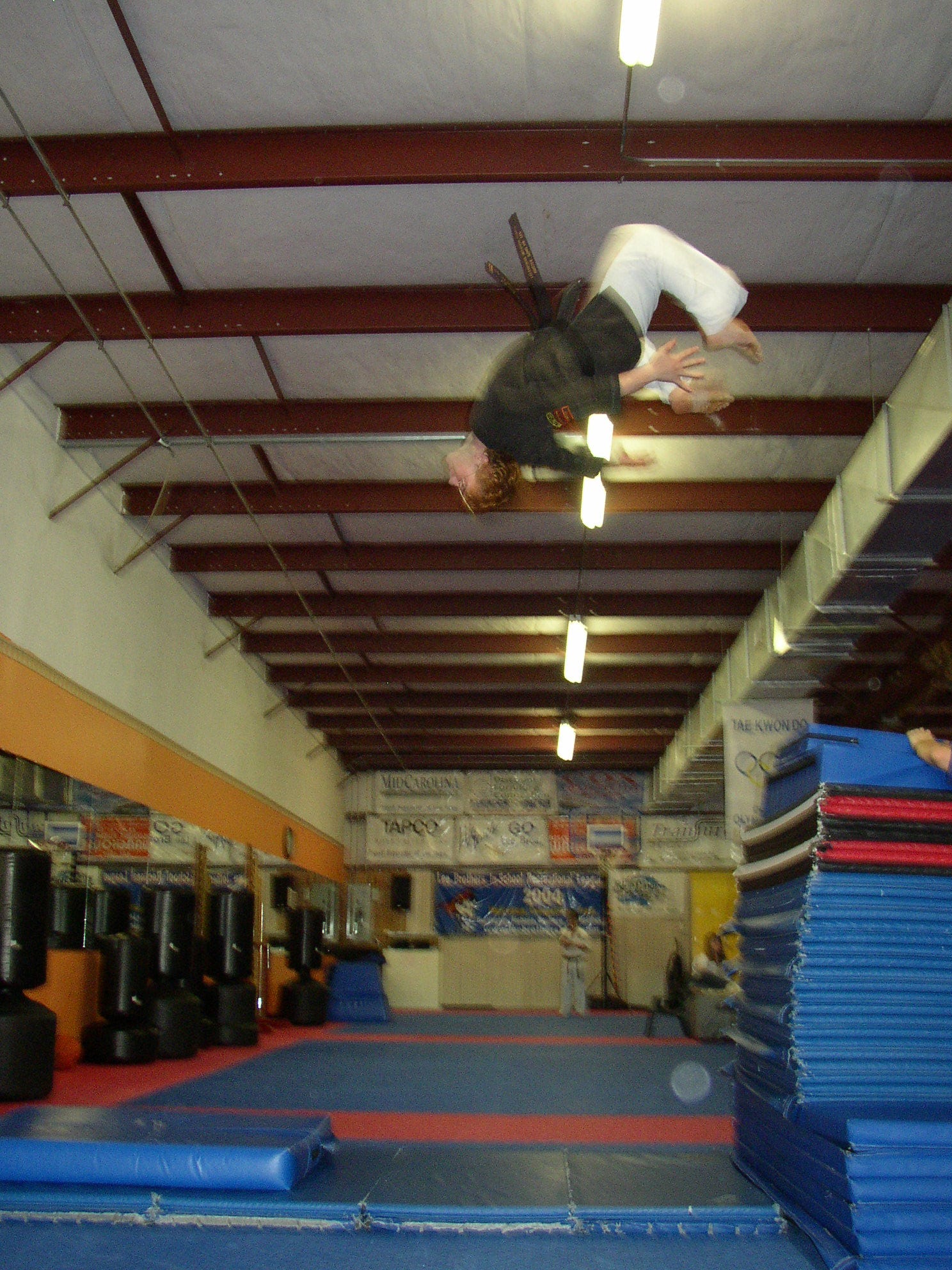 (Or, more accurately, wearing shoes on the mats started to feel wrong, to the point that I had a hard time adjusting when I later joined a parkour gym with a matted floor.)